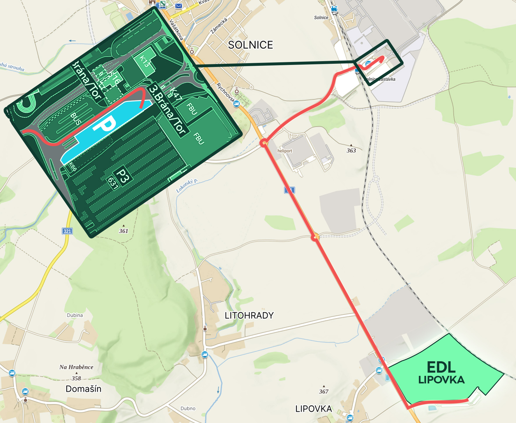 Trasa na Váš sklad v areálu EDL.