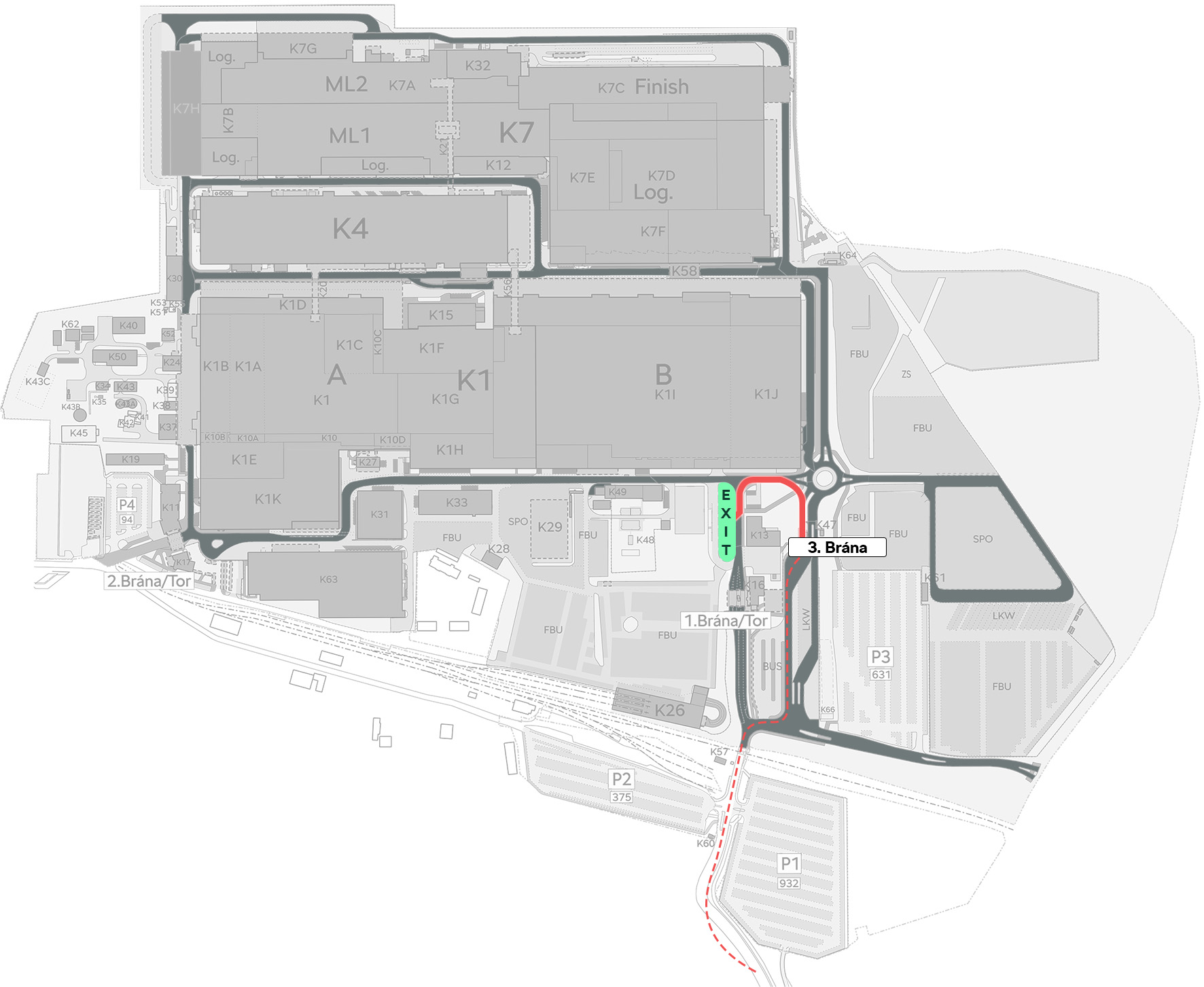Úspěšně jste prošel/a procesem odbavení. Ze závodu odjíždíte 3. branou viz. nákres níže.