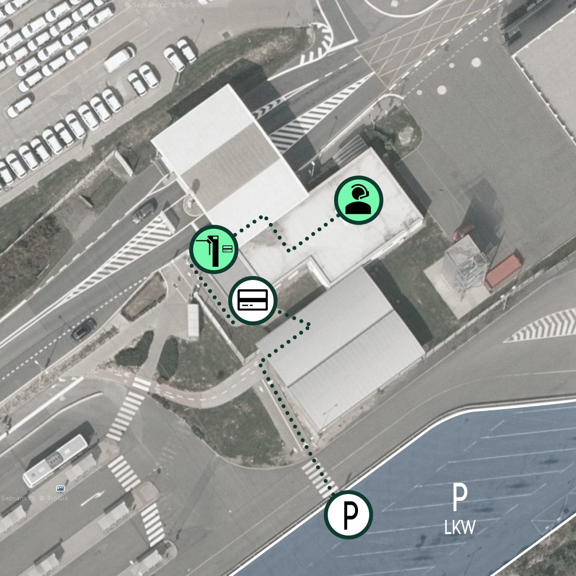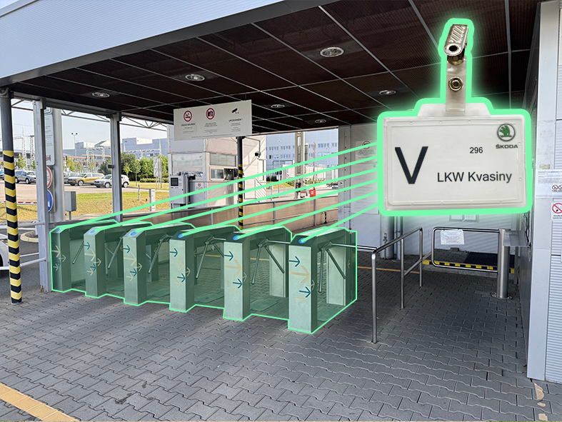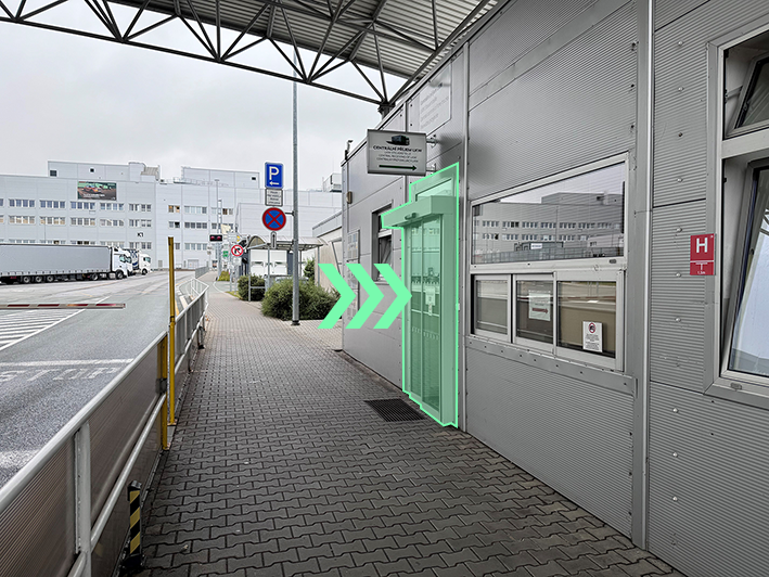 Vstupní kartu přiložte k turniketu a dostavte se na PŘÍJEM LKW dle náčrtku.