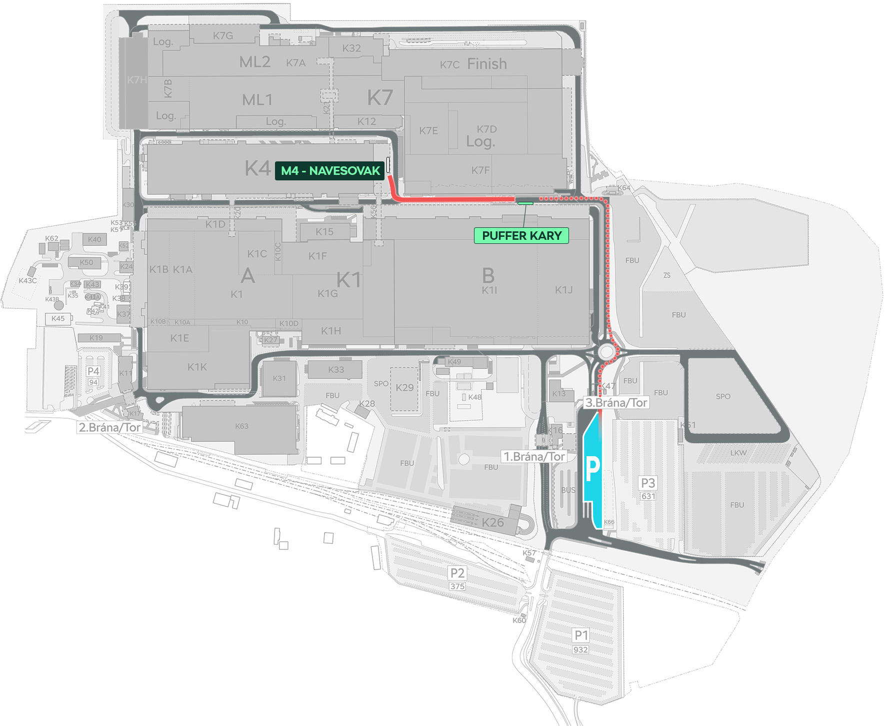 Měl/a byste se nacházet na vyčkávací pozici PUFFER KARY a dále pokračovat na sklad M4-navesovak.