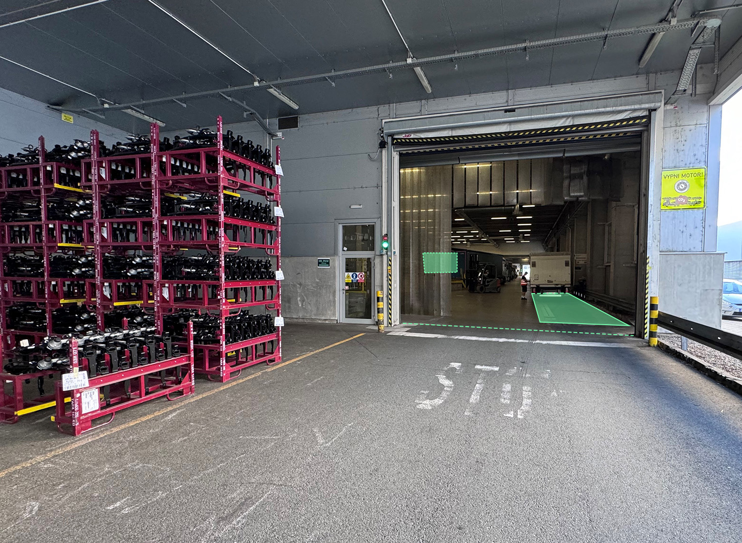 Složiště se nachází vpravo, za vraty do haly. Příjmová kancelář uvnitř, vlevo na rampách.