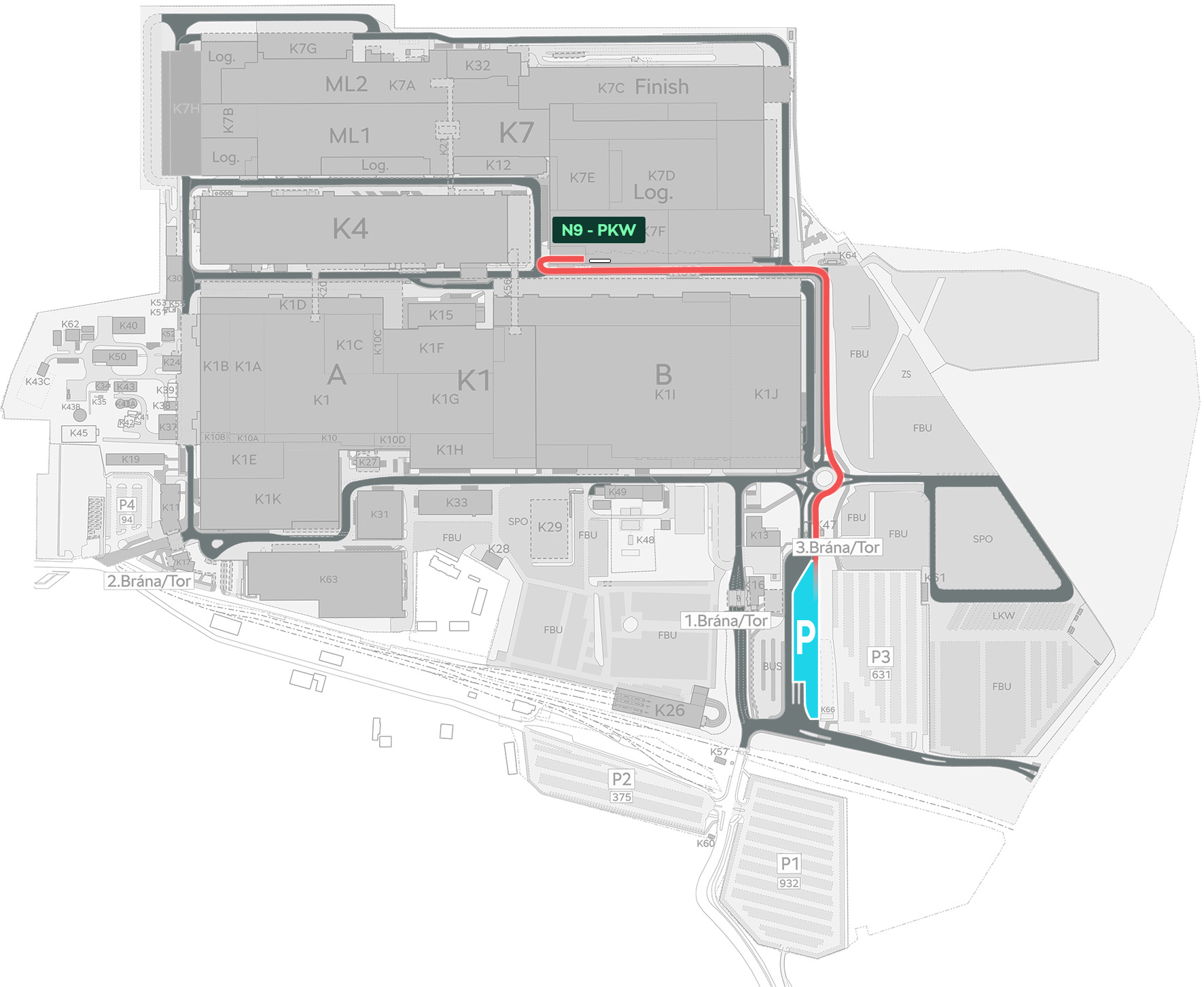Tady máte znázorněnou trasu z parkoviště.