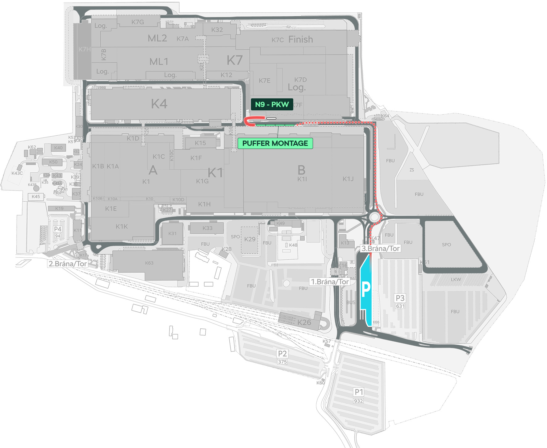 Měl/a byste se nacházet na vyčkávací pozici PUFFER MONTAGE a dále pokračovat na sklad N9_PKW.