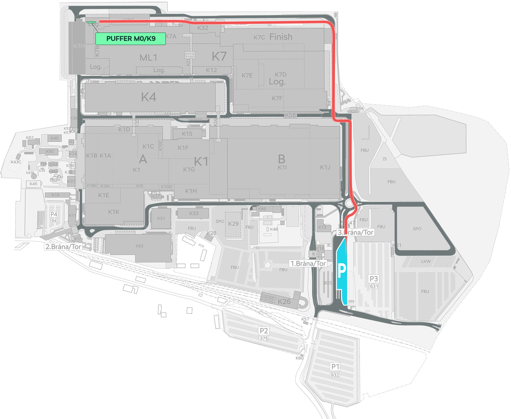 Tady máte znázorněnou trasu z parkoviště.